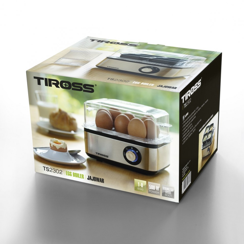 Urządzenie do gotowania jajek, Jajowar automatyczny do 8 jajek, 3 tryby, 500W, TIROSS TS-2302