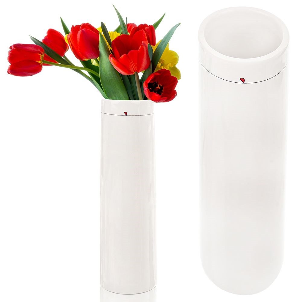 Wazon wykonany z ceramiki w kolorze białym z delikatnym dekorem w postaci serduszka. Idealny na kwiaty żywe oraz sztuczne. Wazon będzie piękną dekoracją w każdym domu.