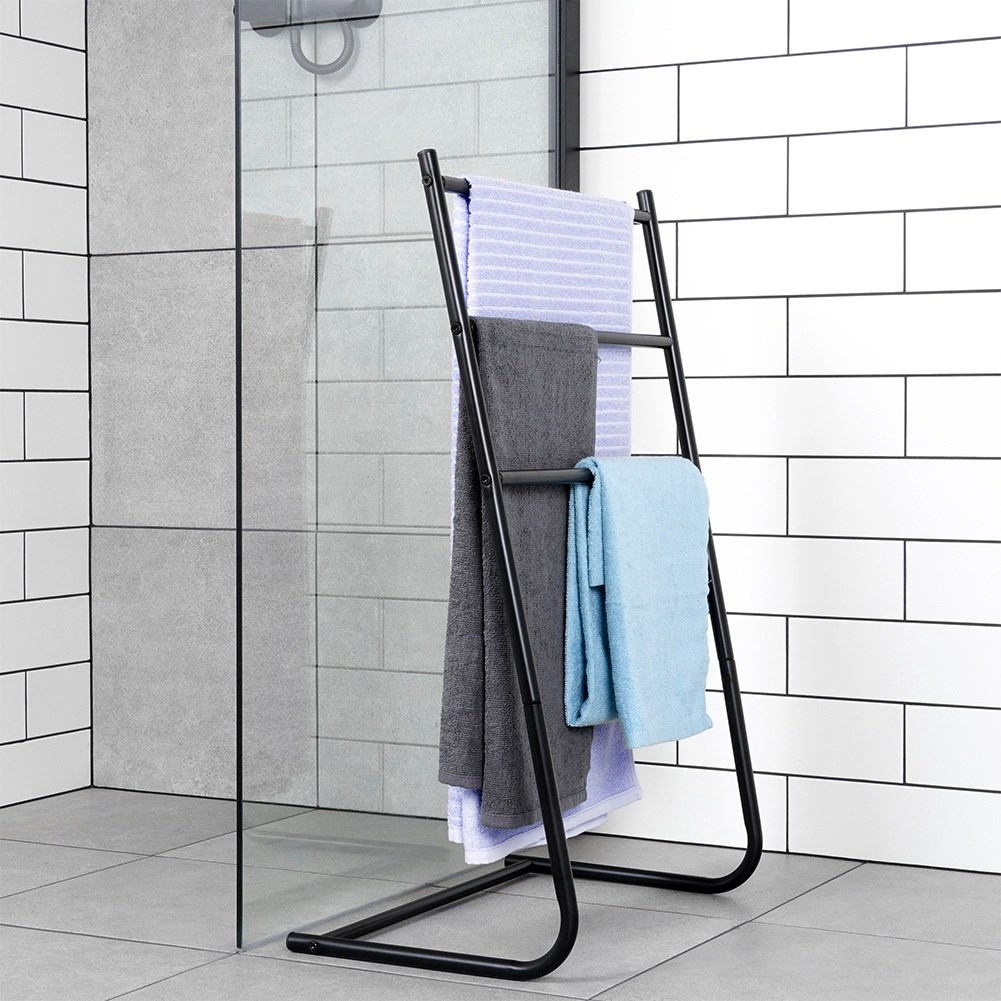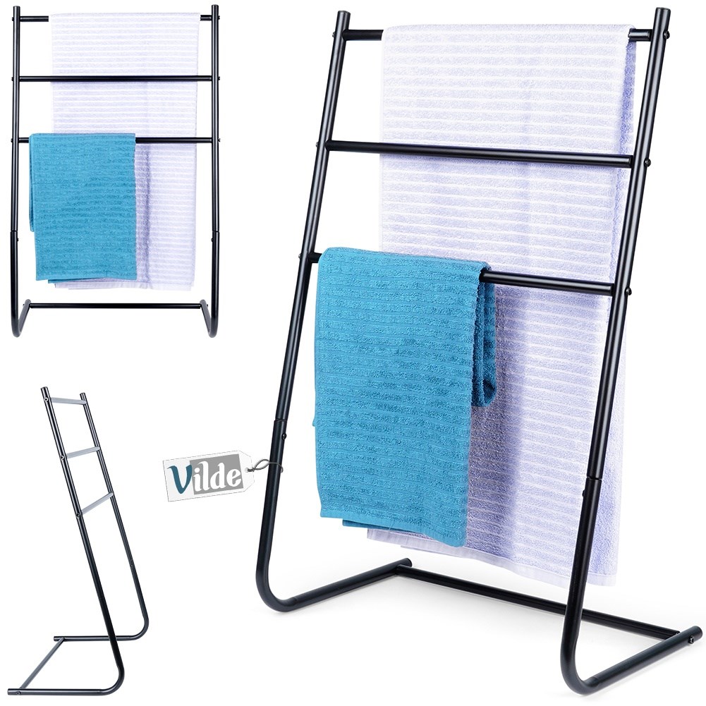 Wieszak na ręczniki stojący metalowy czarny VILDE