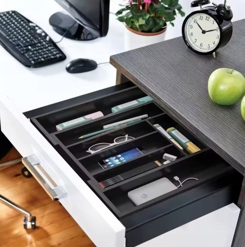 - Dzięki rozsuwanym elementom na boki organizer z łatwością możemy dopasować do naszej szuflady.