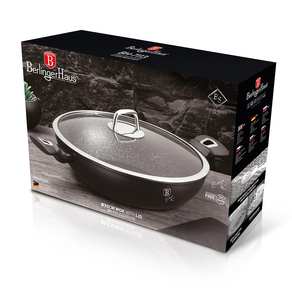Wok z powłoką granitową 30cm 4L BERLINGER HAUS Black Silver BH-7113