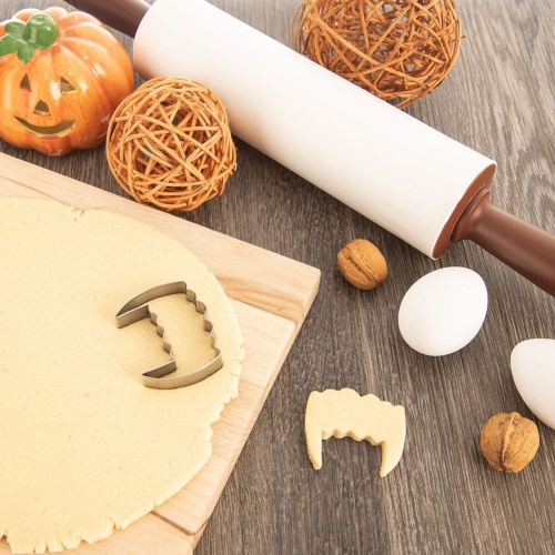 - PRAKTYCZNY - Wykrawacz cukierniczych w kształcie zębów wampira. Idealny do przygotowania ciasteczek i pierników. Wykrawacz ma wymiary 5,5 x 4,5 x 1,5 cm.