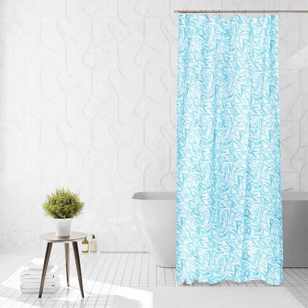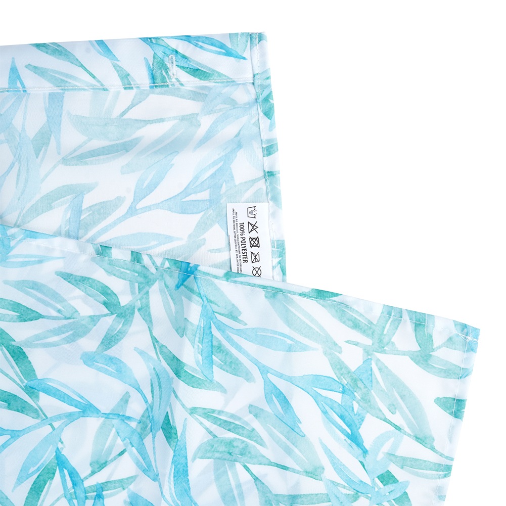 - Wysokiej jakości materiał - Wykonana z wytrzymałego poliestru z efektownym motywem liści w odcieniach niebieskiego i zieleni. Haczyki wykonane są z tworzywa w białym kolorze.