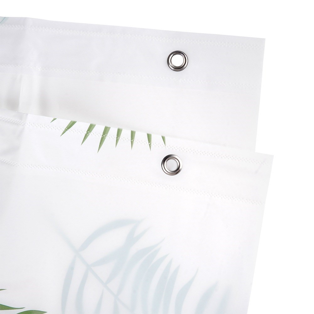 - Wysokiej jakości materiał PEVA - Zasłona wykonana z ekologicznego materiału PEVA, który jest wolny od szkodliwych substancji chemicznych, dzięki czemu jest bezpieczny dla zdrowia i środowiska. Zasłona w białym kolorze z motywem zielonych roślin. Folia PEVA jest przyjazna dla środowiska, gdyż ulega całkowitej biodegradacji. Haczyki wykonane z tworzywa w białym kolorze.