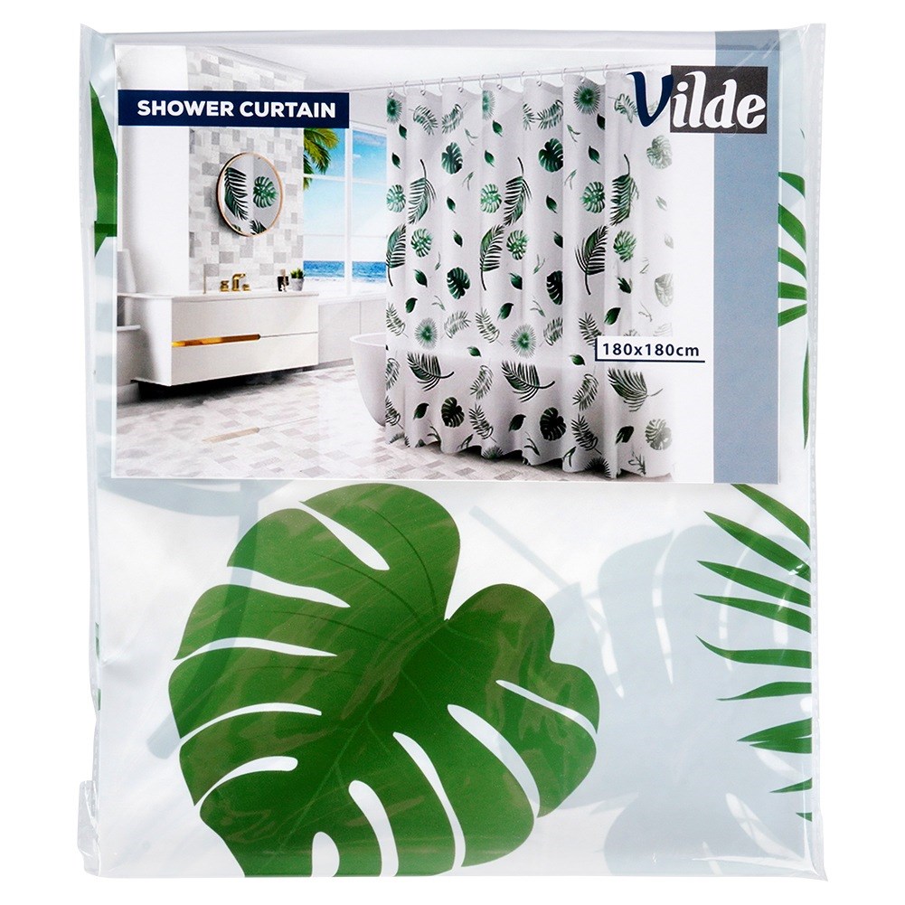 Zasłona prysznicowa w zestawie z haczykami do zawieszenia zasłony. Haczyki umożliwią montaż zasłony na drążku (drążek nie jest dołączony do zestawu). Zapewnia skuteczną ochronę łazienki przed wodą, jednocześnie będąc łatwą do utrzymania w czystości. Jej nowoczesny wzór doda stylu każdemu wnętrzu, wpasowując się zarówno w klasyczne, jak i nowoczesne aranżacje. Oryginalny produkt marki Vilde. Wyprodukowano zgodnie z europejskimi standardami.