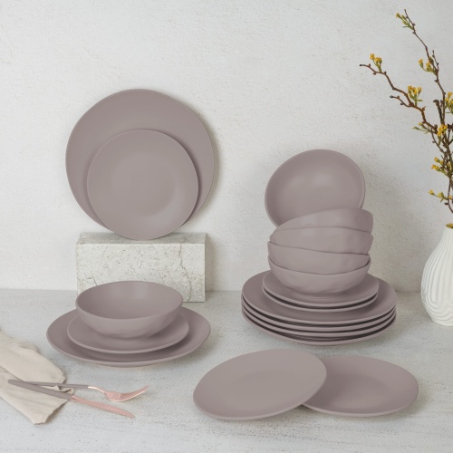 Zastawa stołowa Serwis Komplet talerzy naczyń 18 ele dla 6 osób BERLINGER HAUS Taupe BH-10023