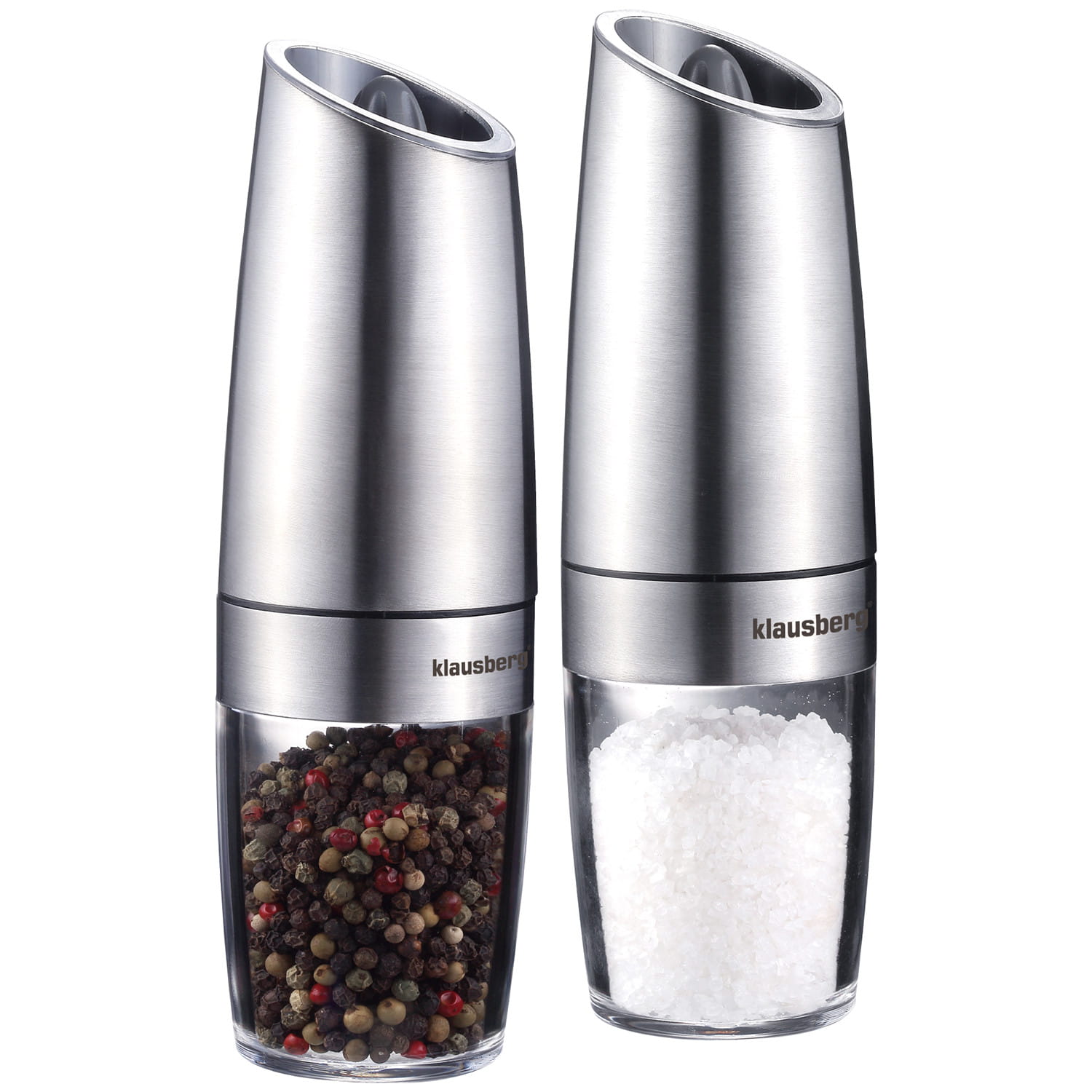 Zestaw 2 grawitacyjnych młynków elektrycznych do soli lub pieprzu firmy KLAUSBERG.