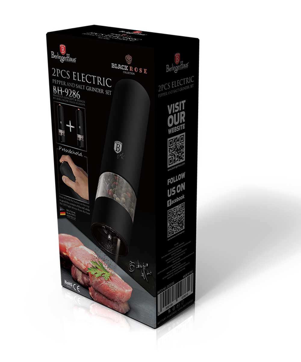 Zestaw 2 młynków elektrycznych do pieprzu i soli BERLINGER HAUS Black Rose BH-9286