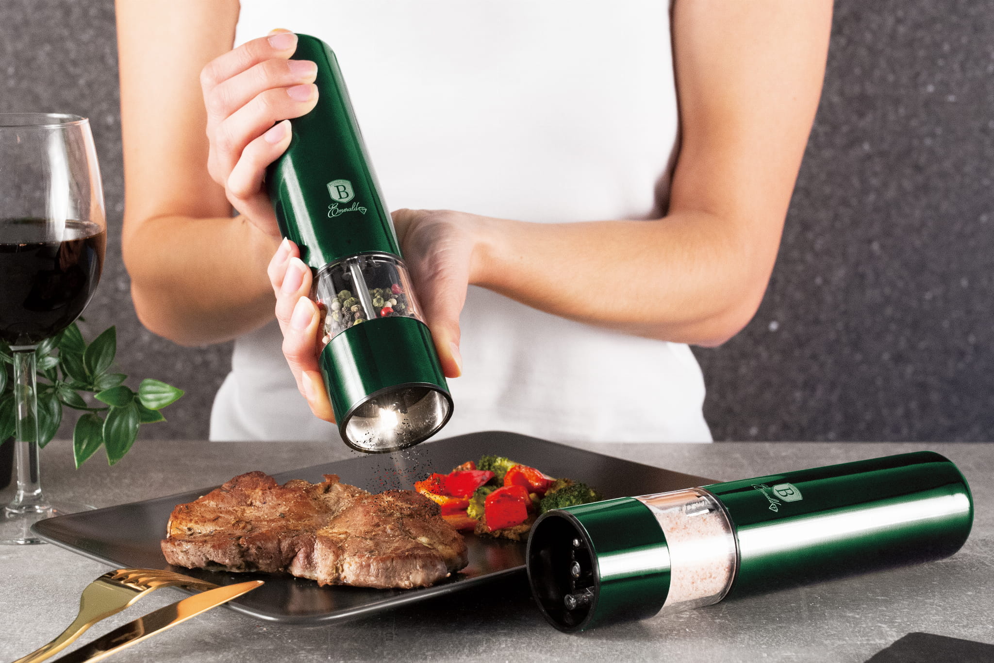 Zestaw 2 młynków elektrycznych do pieprzu i soli marki BERLINGER HAUS z linii EMERALD.