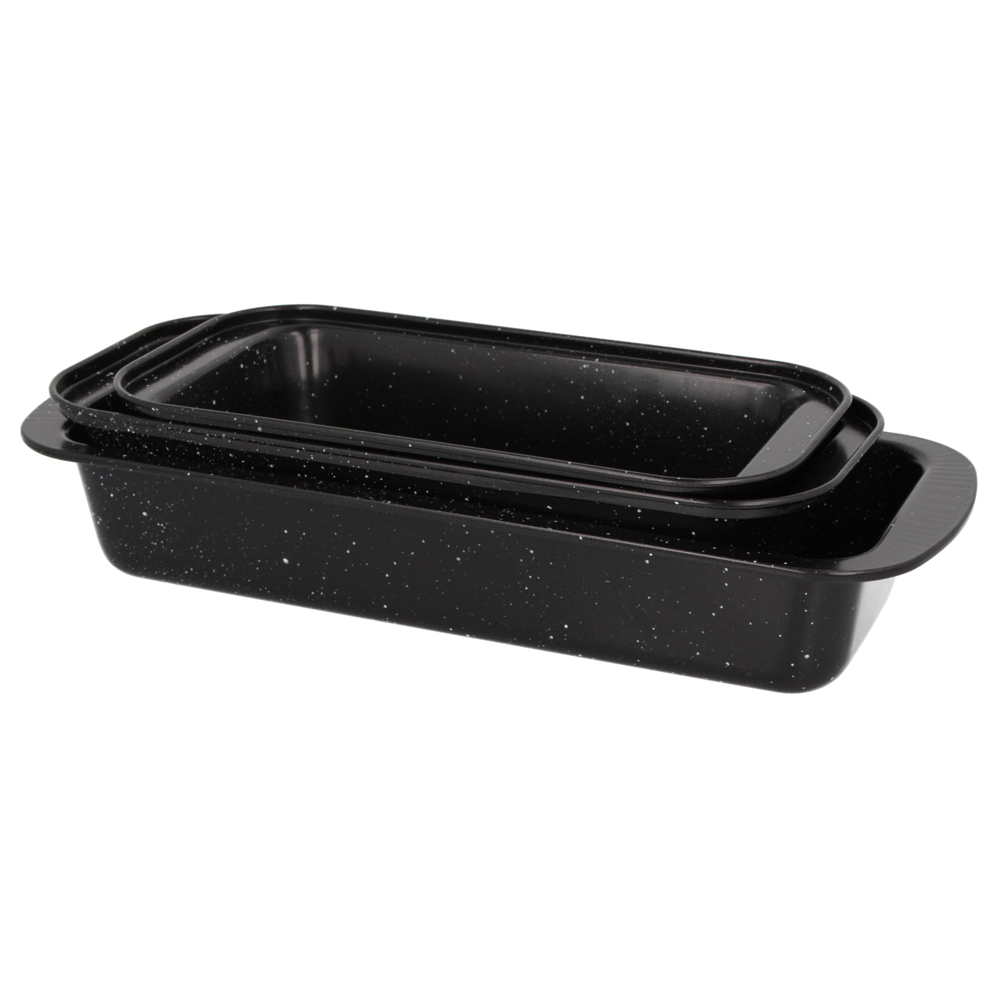 Zestaw 3 blach do pieczenia z marmurową powłoką nieprzywieralną 35/30/25 x13x6cm BRUNBESTE