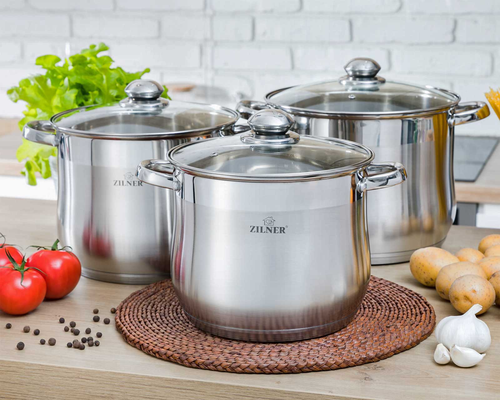 Zestaw 3 garnków gastronomicznych ZILNER wykonany z wysokiej jakości stali nierdzewnej.