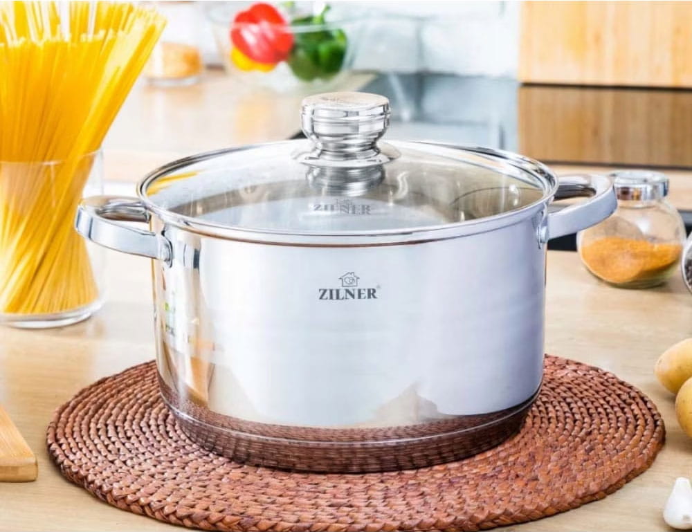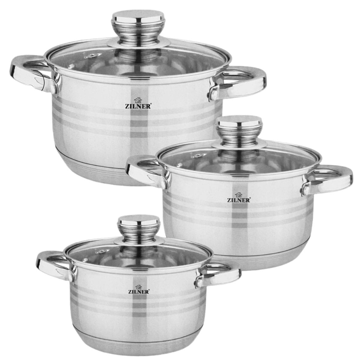 6 częściowy komplet garnków firmy ZILNER wykonany ze stali nierdzewnej.