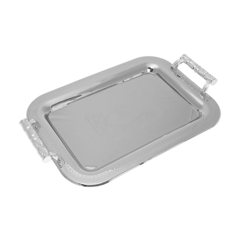 Zestaw 3 eleganckich tac do serwowania wykonanych z wysokiej jakości stali chromowanej polerowanej na wysoki połysk.