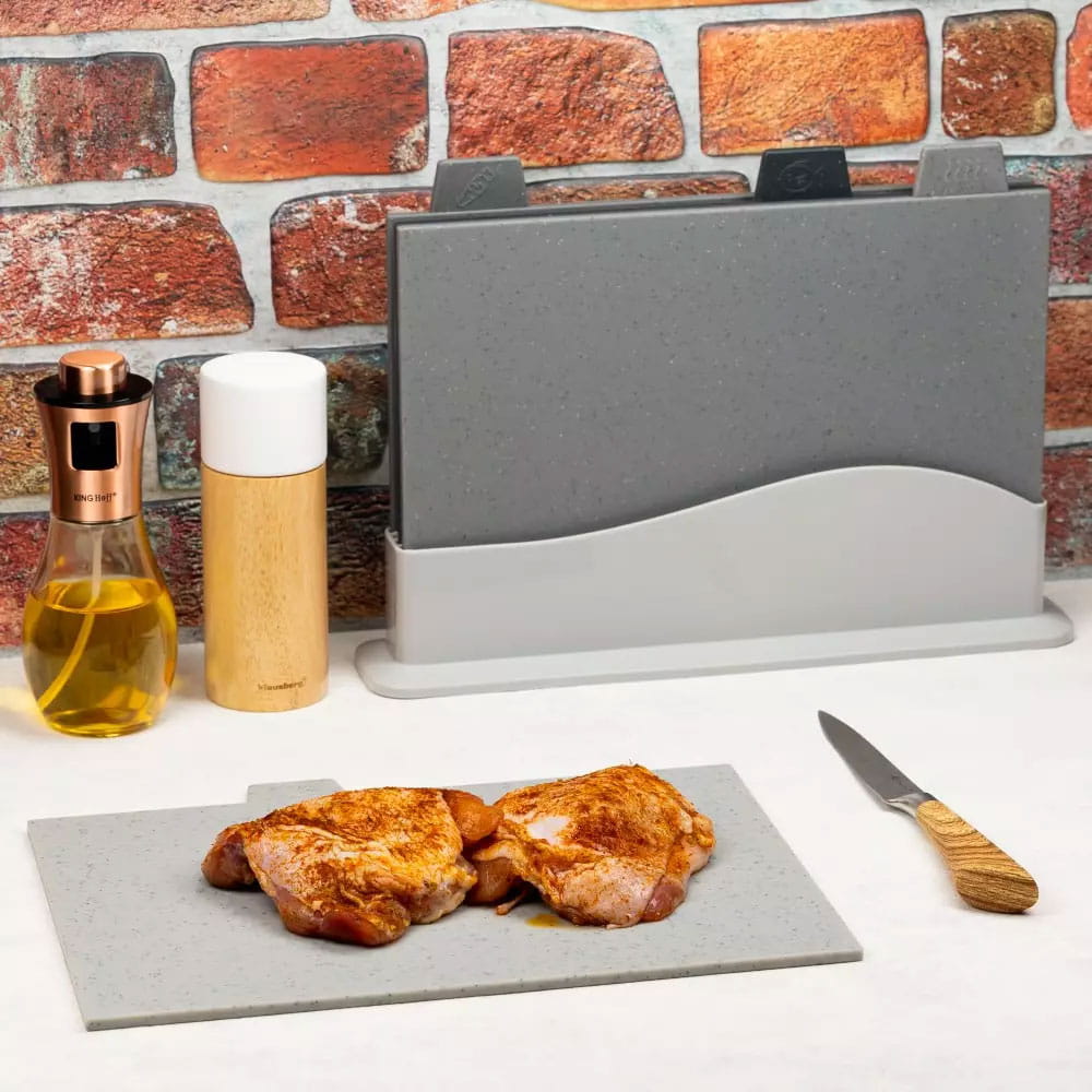 Zestaw 4 desek do krojenia na stojaku firmy KINGHOFF