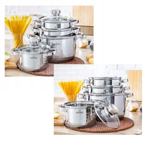 8 częściowy komplet garnków firmy ZILNER wykonany ze stali nierdzewnej.