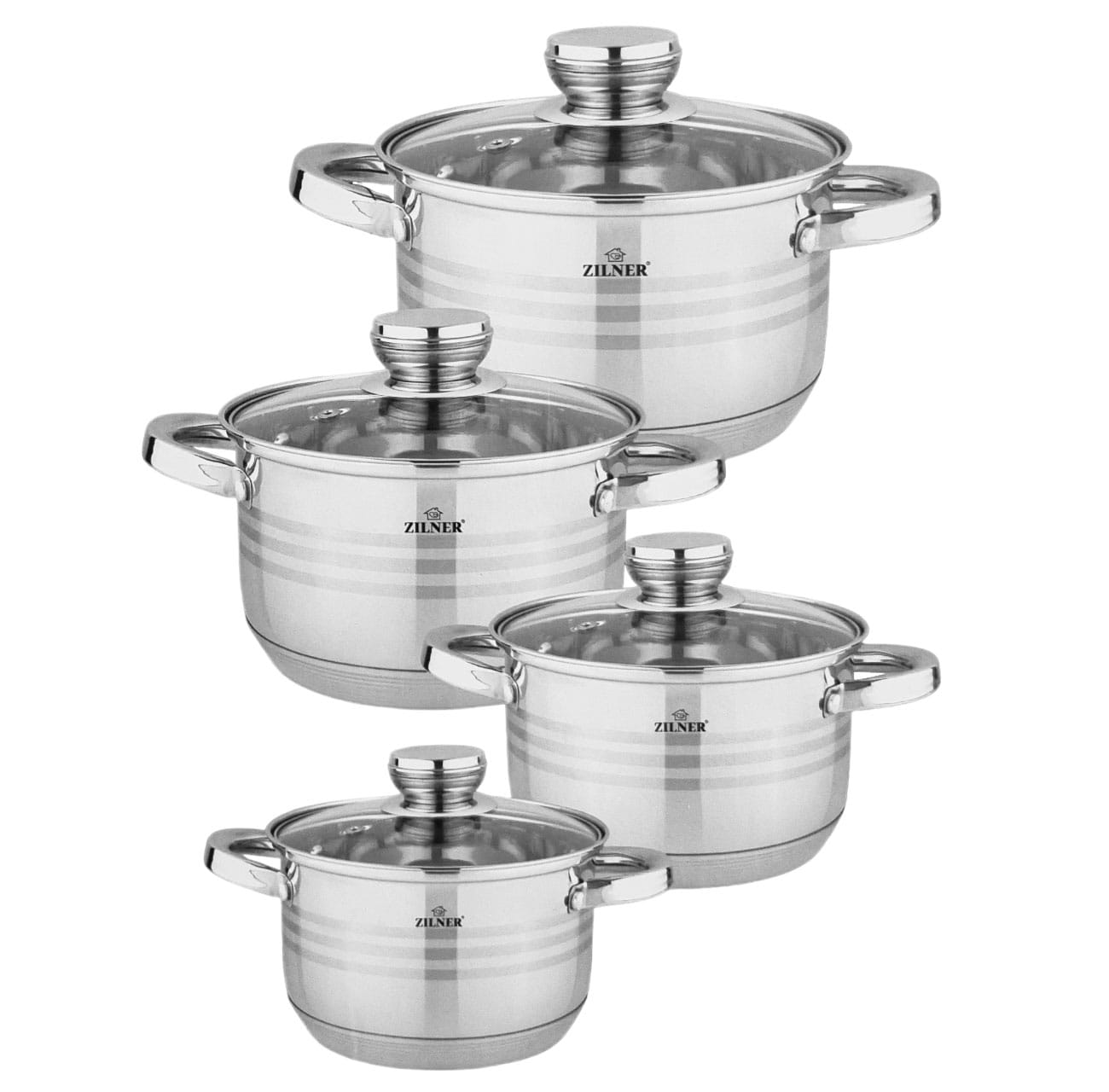 Zestaw 4 garnków stalowych 8 ele. 2.1 / 2.9 / 3.9 / 6.6L ZILNER ZL-8071