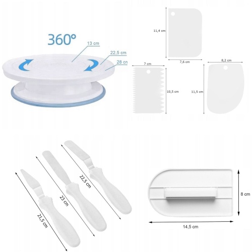 Zestaw akcesoriów do dekorowania ciast 8 ele. patera obrotowa szpatuły.BRUNBESTE BB-2903