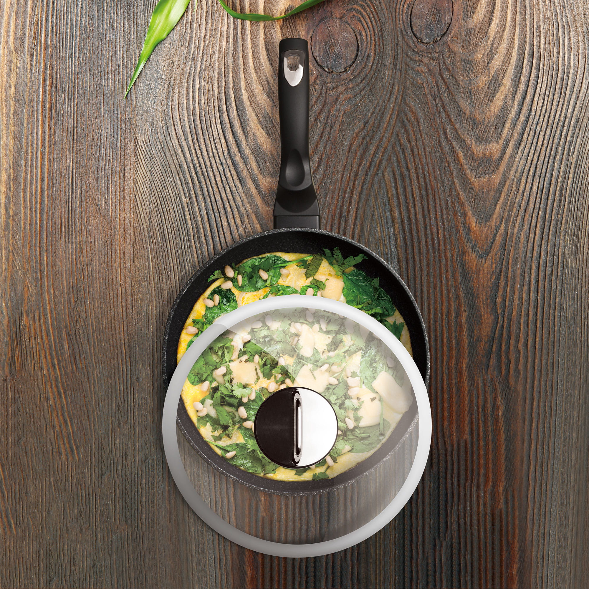 Granitowa powłoka sprawia, że naczynia są wyjątkowo odporne na wszelkie zarysowania i trwałe. Ten typ garnków i patelni pozwala również na smażenie przy użyciu minimalnej ilości tłuszczu, ponieważ naczynie rozgrzewa się podobnie do kamienia i oddaje ciepło całą swą powierzchnią.