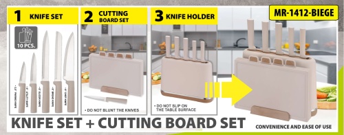 Zestaw noży + desek na podstawce (SKU: MR-1412-BEIGE)