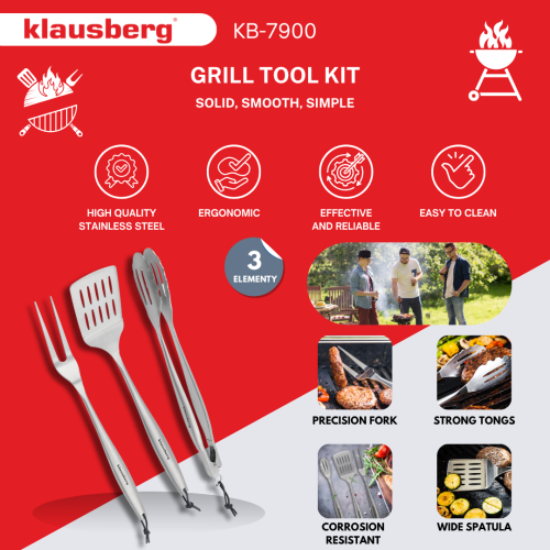 3 częściowy zestaw narzędzi do grillowania KLAUSBERG KB-7900