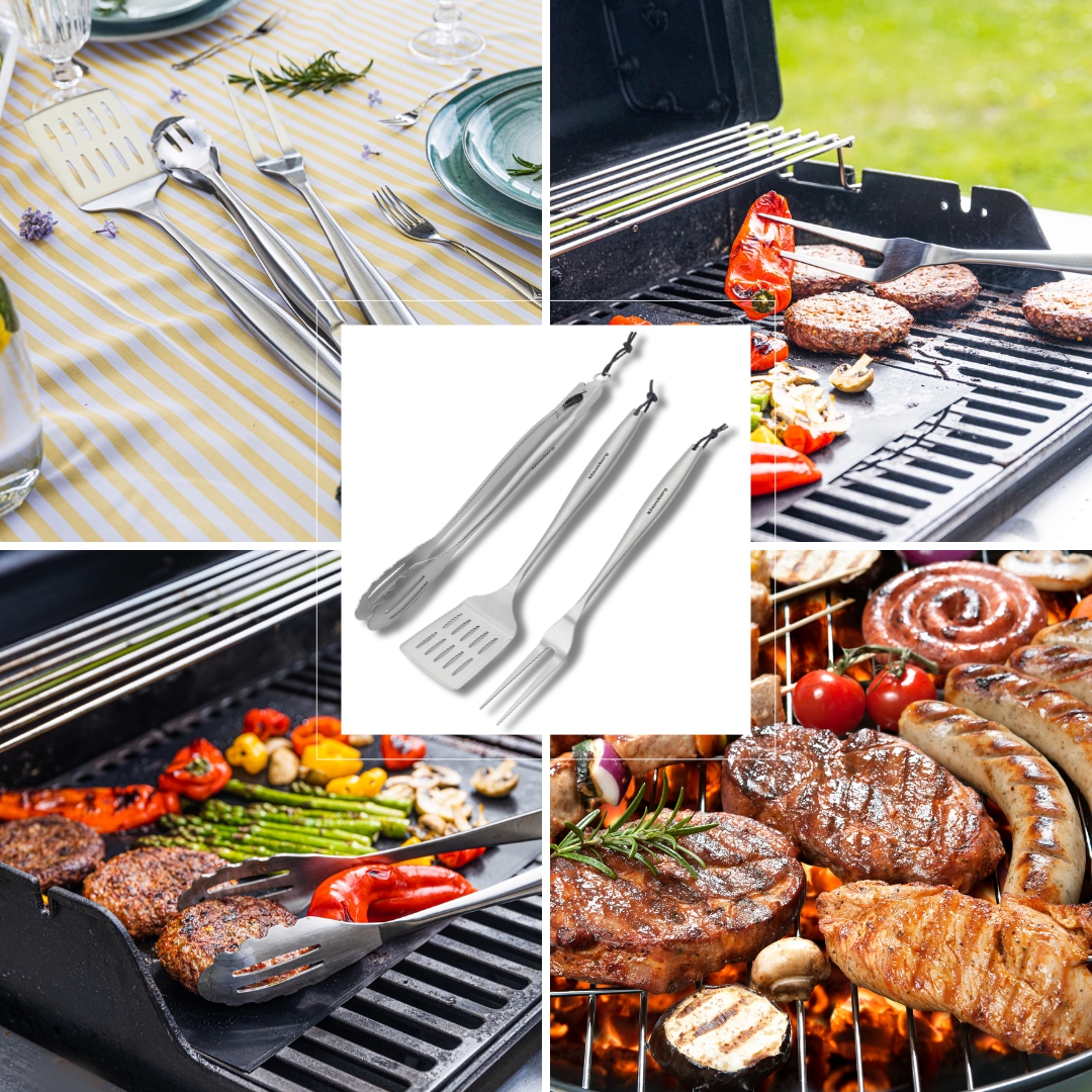 3 częściowy zestaw narzędzi do grillowania KLAUSBERG KB-7900 o jakości premium to propozycja dla osób, które cenią solidne wykonanie, wygodę i elegancki wygląd. Dzięki trwałym materiałom i dopracowanej konstrukcji, ten komplet doskonale sprawdzi się zarówno podczas rodzinnego grillowania, jak i w rękach bardziej wymagających użytkowników.