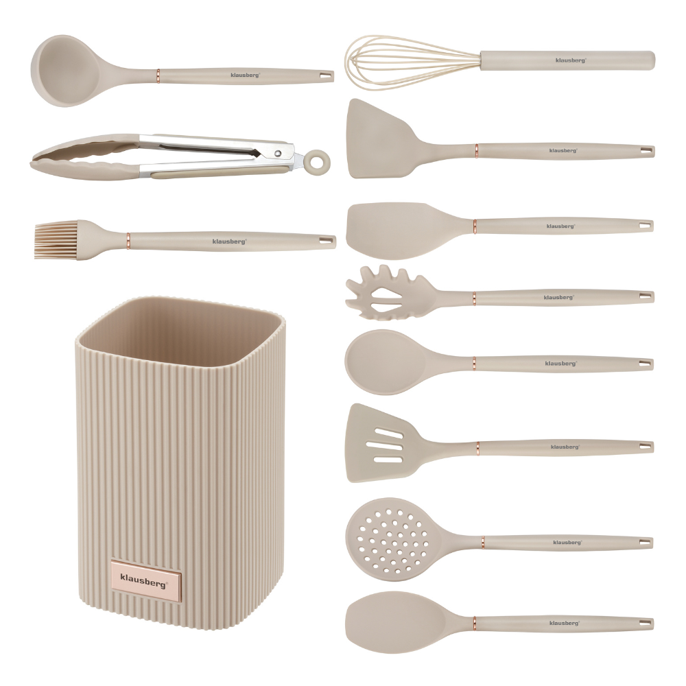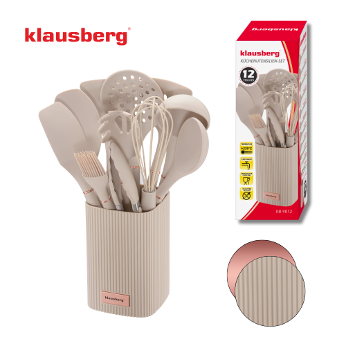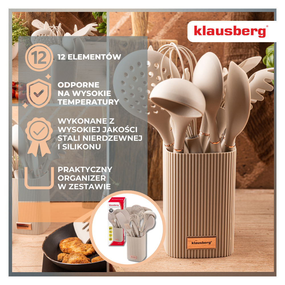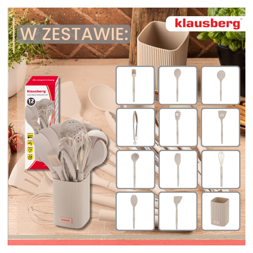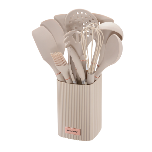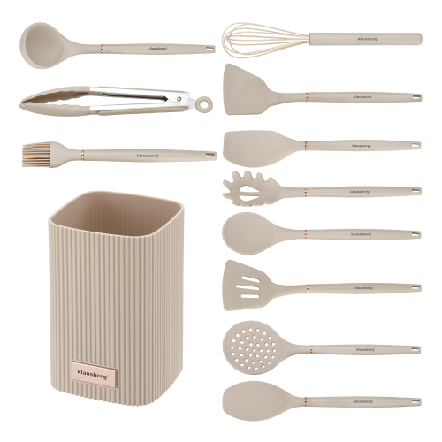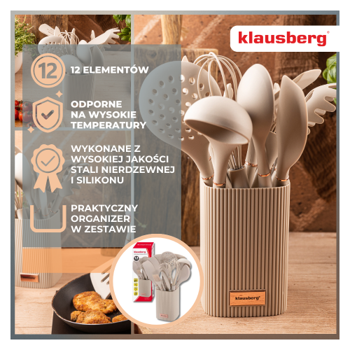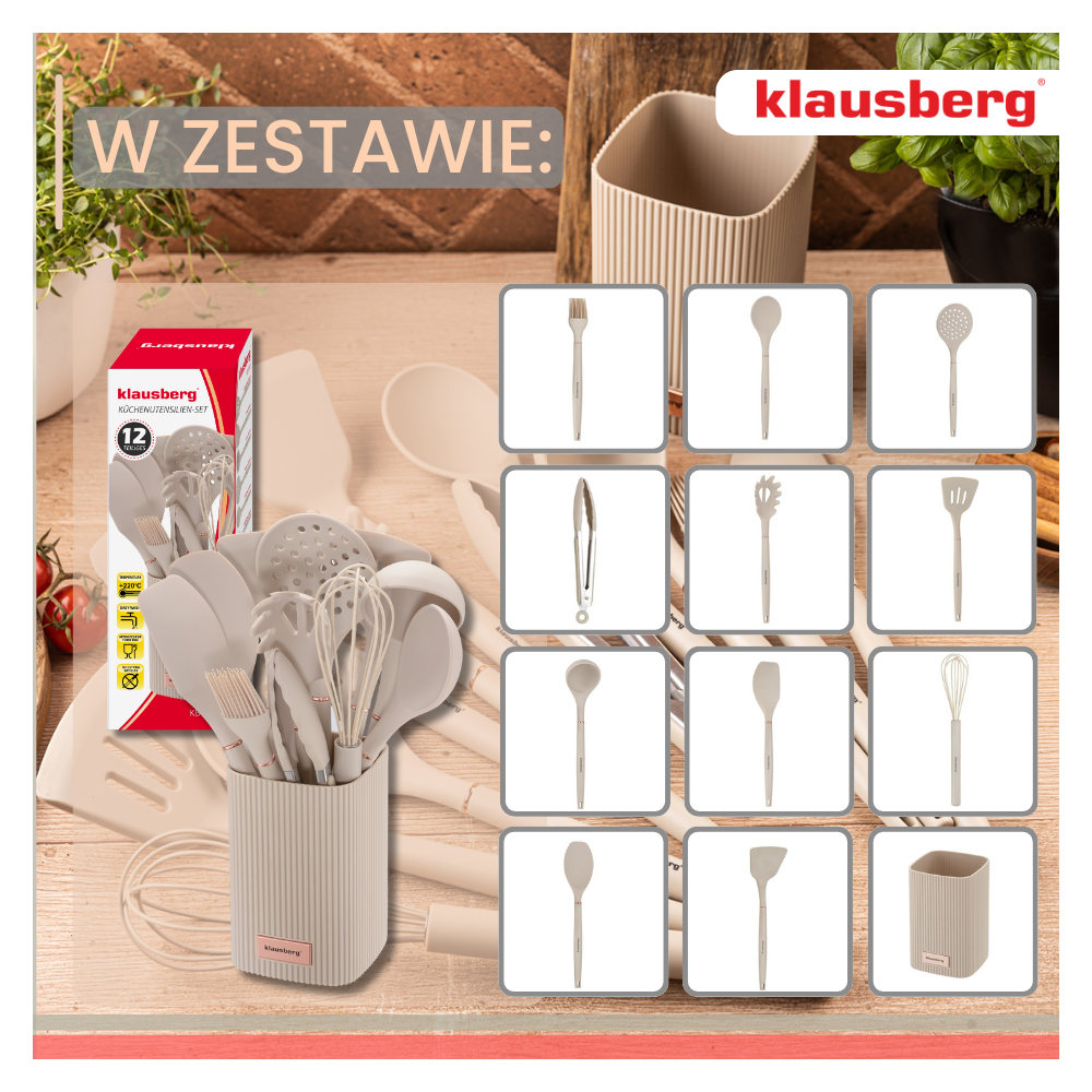 Zestaw przyborów kuchennych 12 el. beżowy silikonowy, KLAUSBERG KB-9012