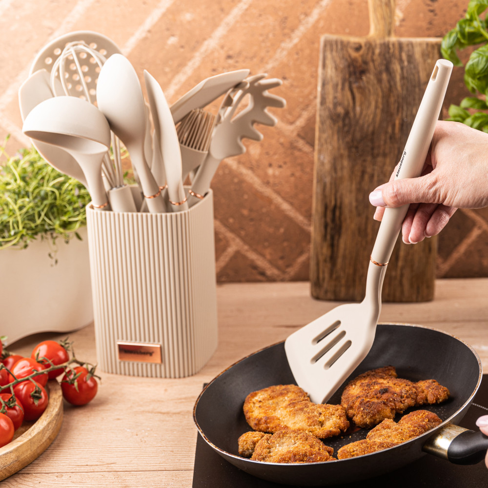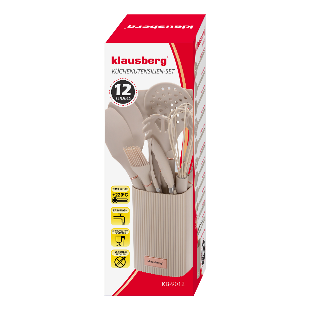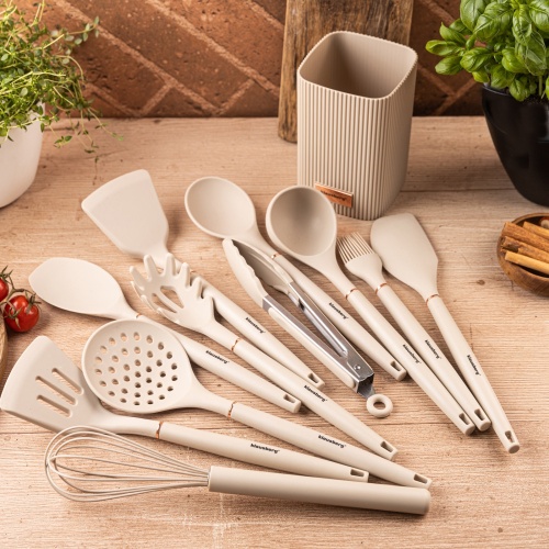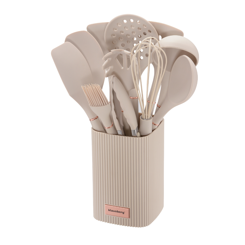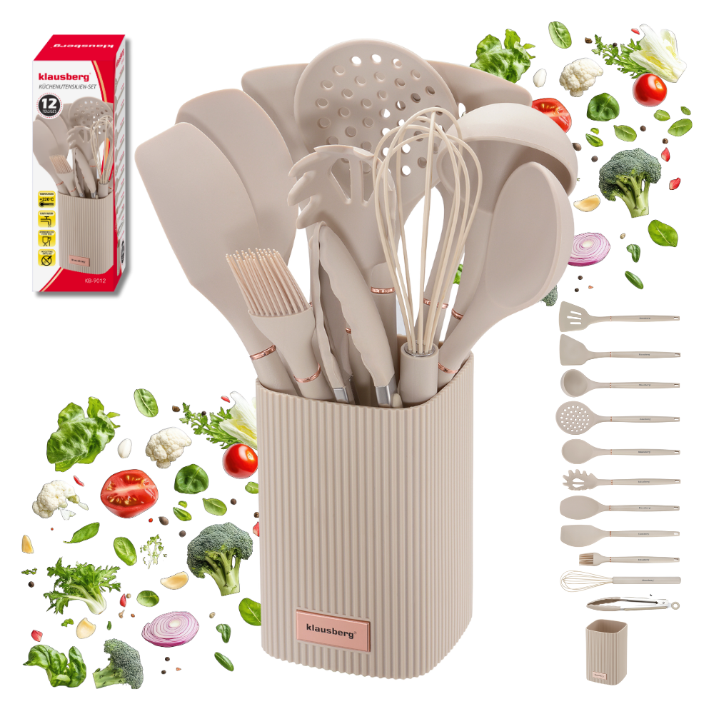 Zestaw przyborów kuchennych 12 el. beżowy silikonowy, KLAUSBERG KB-9012