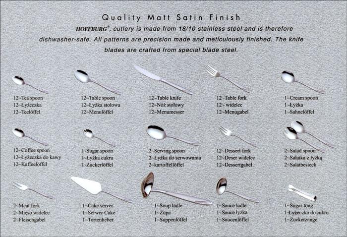 Na rynku można spotkać sztućce o podobnych lub nawet takich samych wzorach które na zdjęciach w ofertach wyglądają b.podobnie, a kosztują połowę ceny. Prawda jednak jest taka że jakościowo nie umywają się do oryginalnych sztućców marki HOFFBURG. Sprzedajemy sztućce tej firmy od 10 lat z wielkim powodzeniem i zdobyły one sobie wierną rzeszę zadowolonych klientów. Są szczególnie chętnie wybierane jako ekskluzywny prezent ślubny. Jeżeli poszukujesz sztućców dobrej jakości na wiele lat za umiarkowaną cenę, zapraszamy do skorzystania z naszej oferty.