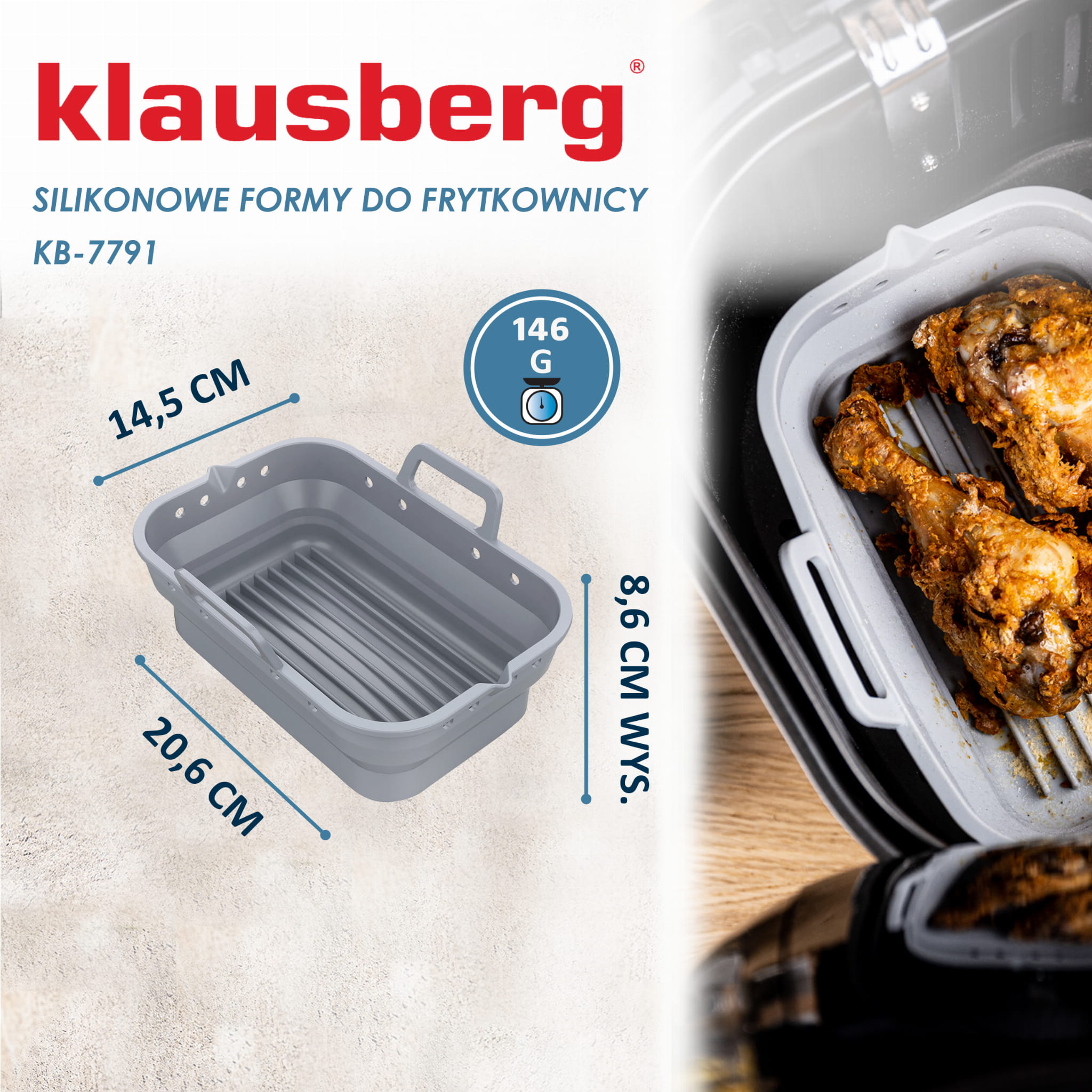 Zestaw wkładów silikonowych do frytkownicy beztłuszczowej 2 sztuki prostokątny 20.5x14.5cm składany KLAUSBERG KB-7791
